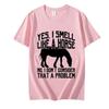 Смешная футболка «От меня пахнет лошадью, без проблем» Классическая футболка Учитель Высокое качество Мужские футболки Футболки в стиле Харадзюку Футболки на заказ