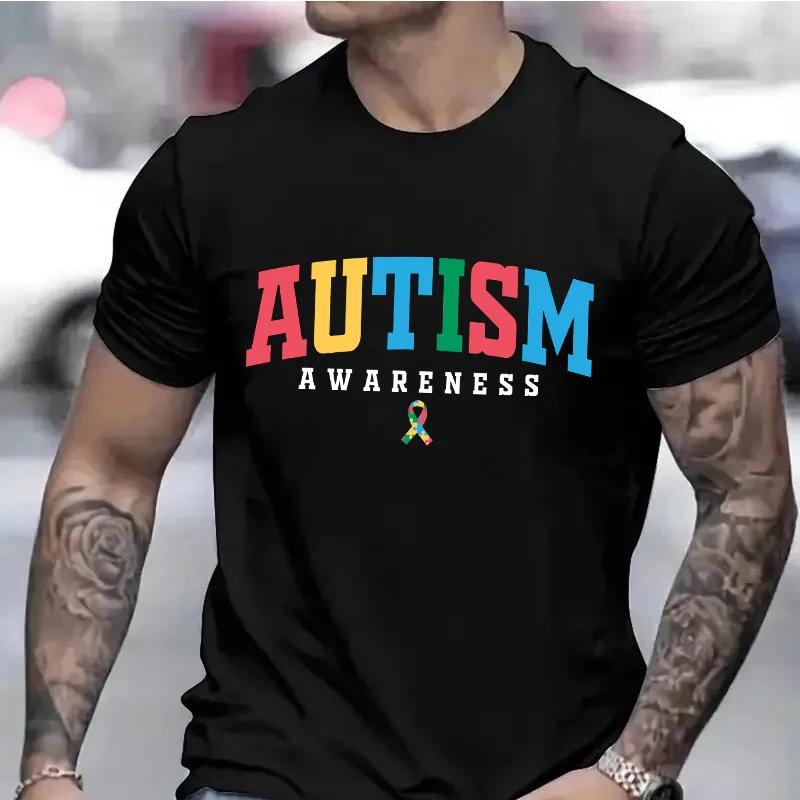 Футболки для мужчин с информационными материалами об аутизме Ретро-футболки с надписью «Месяц информирования об аутизме» Мужские футболки Футболка с рисунком в стиле Харадзюку Одежда для мужчин Верхняя одежда