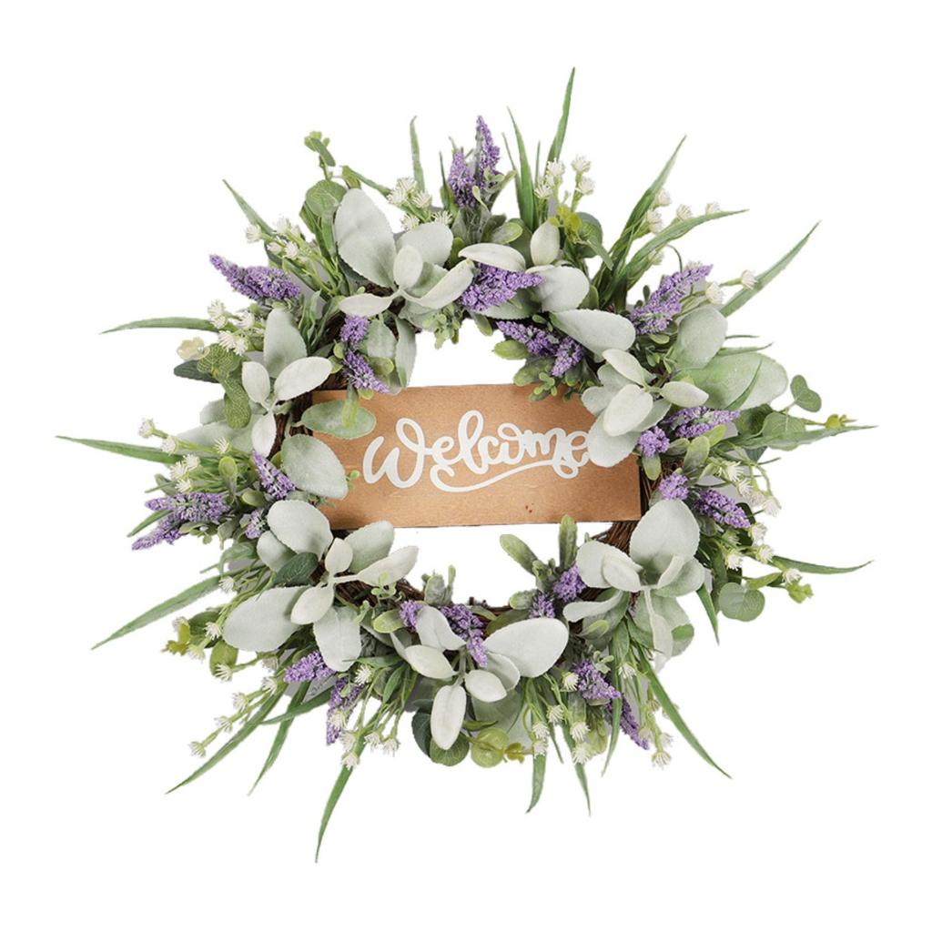 Знак приветствия, венки для входной двери, круглый год, 50 см, летний, весенний, зеленый, эвкалиптовый, венок с ушами ягненка, для декора дома, крыльца, стены