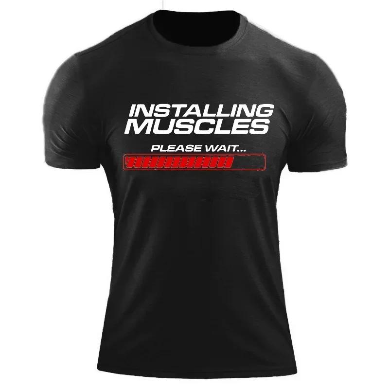 2023 Винтажная футболка Установка мышц Пожалуйста, подождите Забавный дизайн футболка Harajuku Футболка большого размера Модная уличная одежда унисекс Топ — купить товар онлайн с бесплатной доставкой по всему миру!