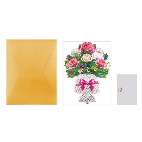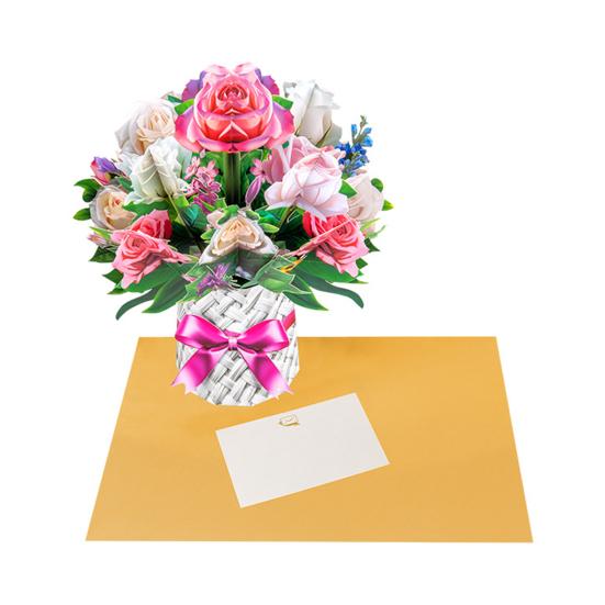 Изысканное мастерство: Эта поздравительная открытка с букетом цветов, тщательно изготовленная из прочной художественной бумаги, может похвастаться замысловатыми деталями и яркими цветами, что делает ее памятным подарком на всю жизнь.