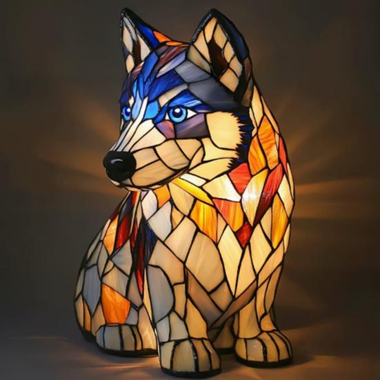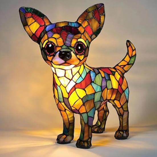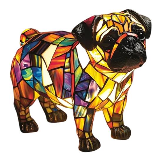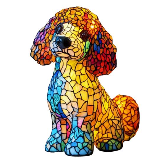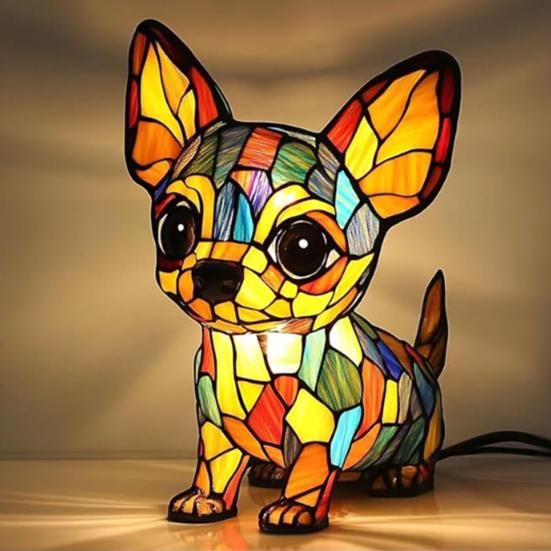 Искусство витражей в стиле ретро: Каждая лампа, вдохновленная собаками, демонстрирует замысловатые витражи, напоминающие винтажную эстетику, передающие игривую сущность любимых пород собак, таких как корги и французские бульдоги.