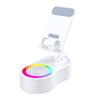 Подставка для телефона, оснащенная датчиком и динамиками, совместимыми с Bluetooth, обеспечивает исключительное качество звука с улучшенными басами, средними и высокими частотами.. Наслаждайтесь чистым звуком без искажений, независимо от того, отвечаете ли вы на звонки во время приготовления пищи или слушаете музыку и смотрите фильмы, не занимая руки.. Светодиодная подсветка RGB вдоль держателя телефона яркая и сочная, режимы освещения просто дополняют общий эффект и красоту этого продукта суперкрутым способом..