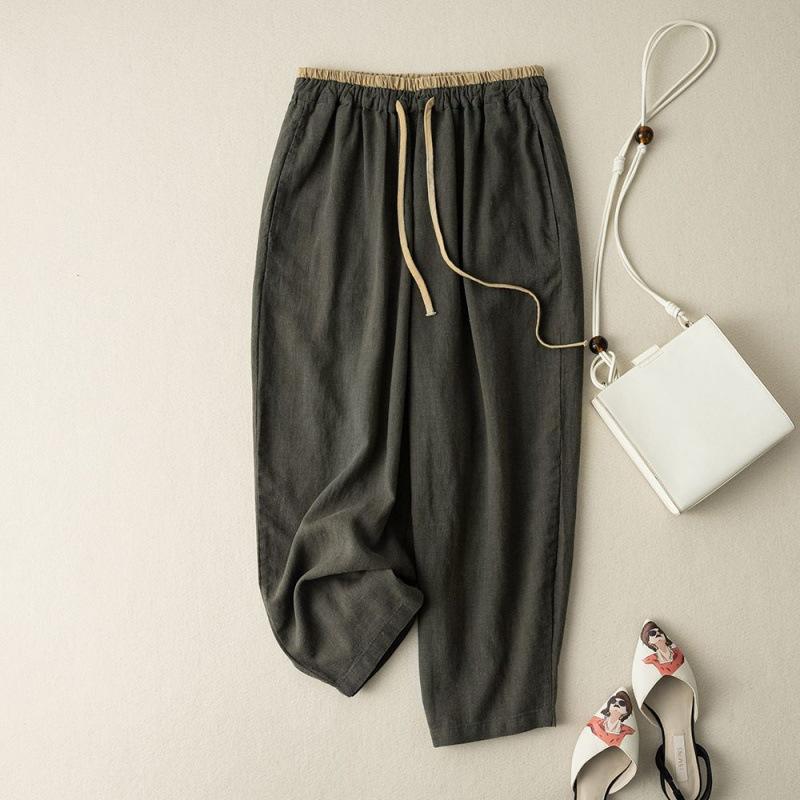 Женские летние повседневные брюки в стиле ретро с эластичной резинкой на талии, свободные шаровары, универсальные, широкие брюки длиной до щиколотки