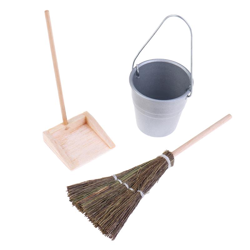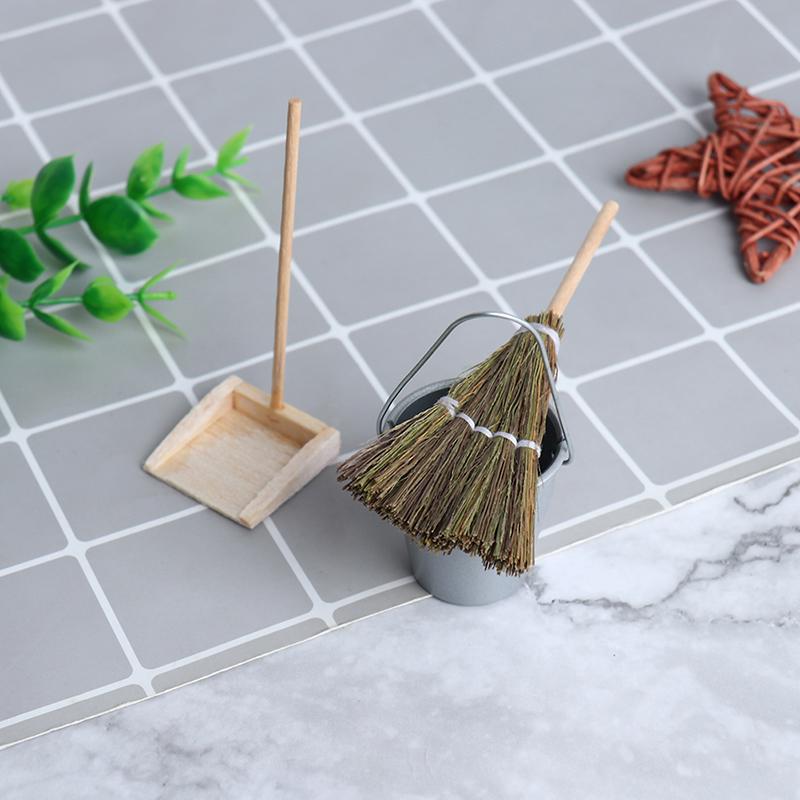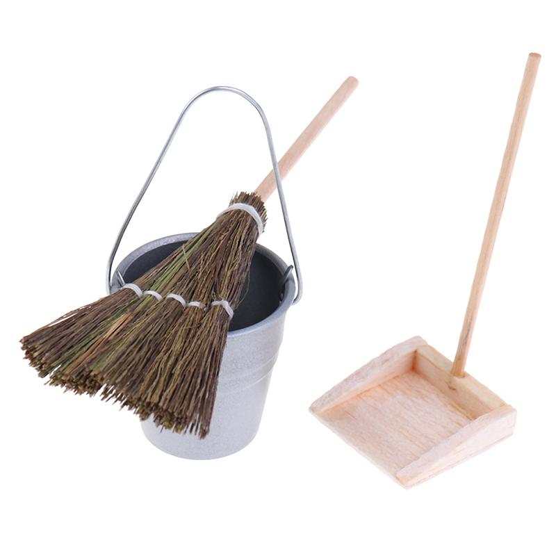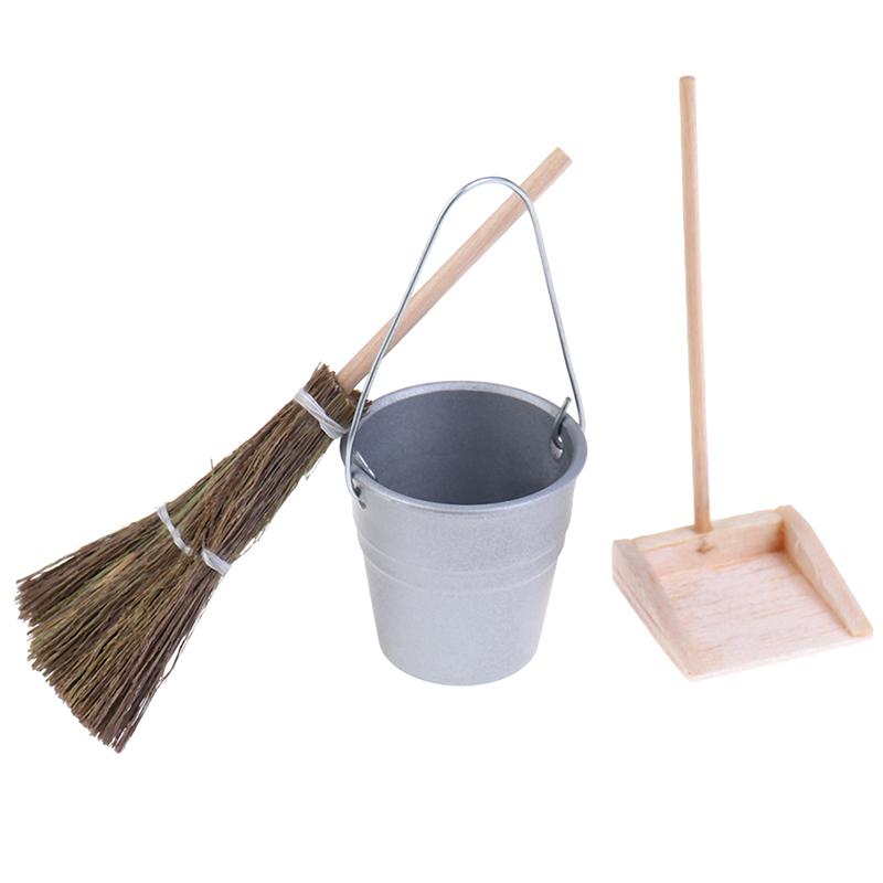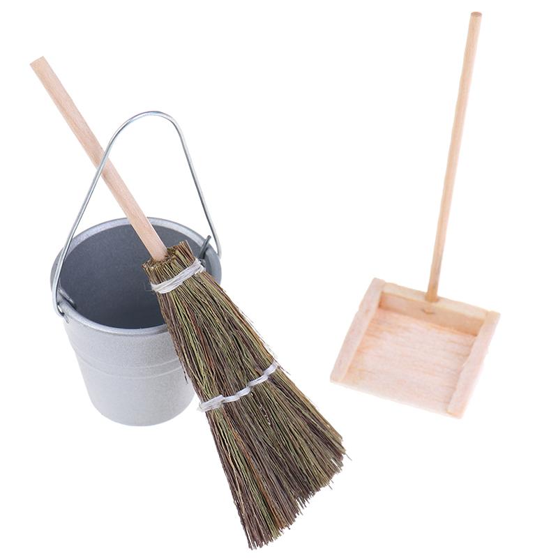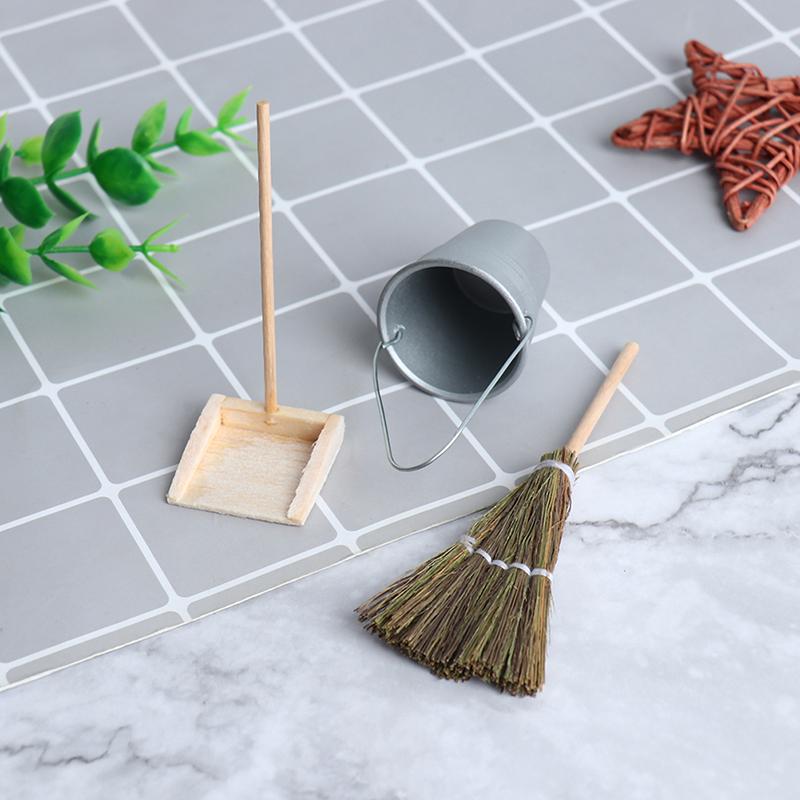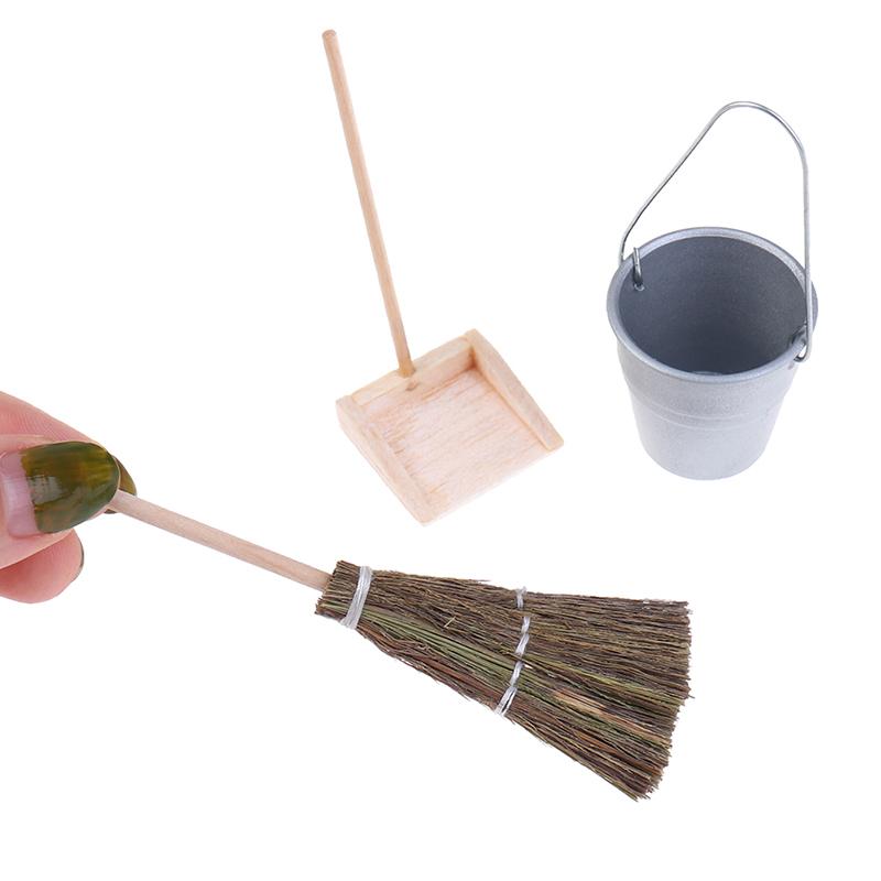3 шт./компл. 1:12 Миниатюрный кукольный домик Метла Ведро Мусорная Лопата Куклы Аксессуары