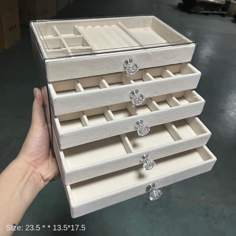 Новый регулируемый футляр для хранения ювелирных изделий, 5-слойный ящик, бархатный лоток, органайзер для сережек, браслетов, штабелируемый стеллаж для колец