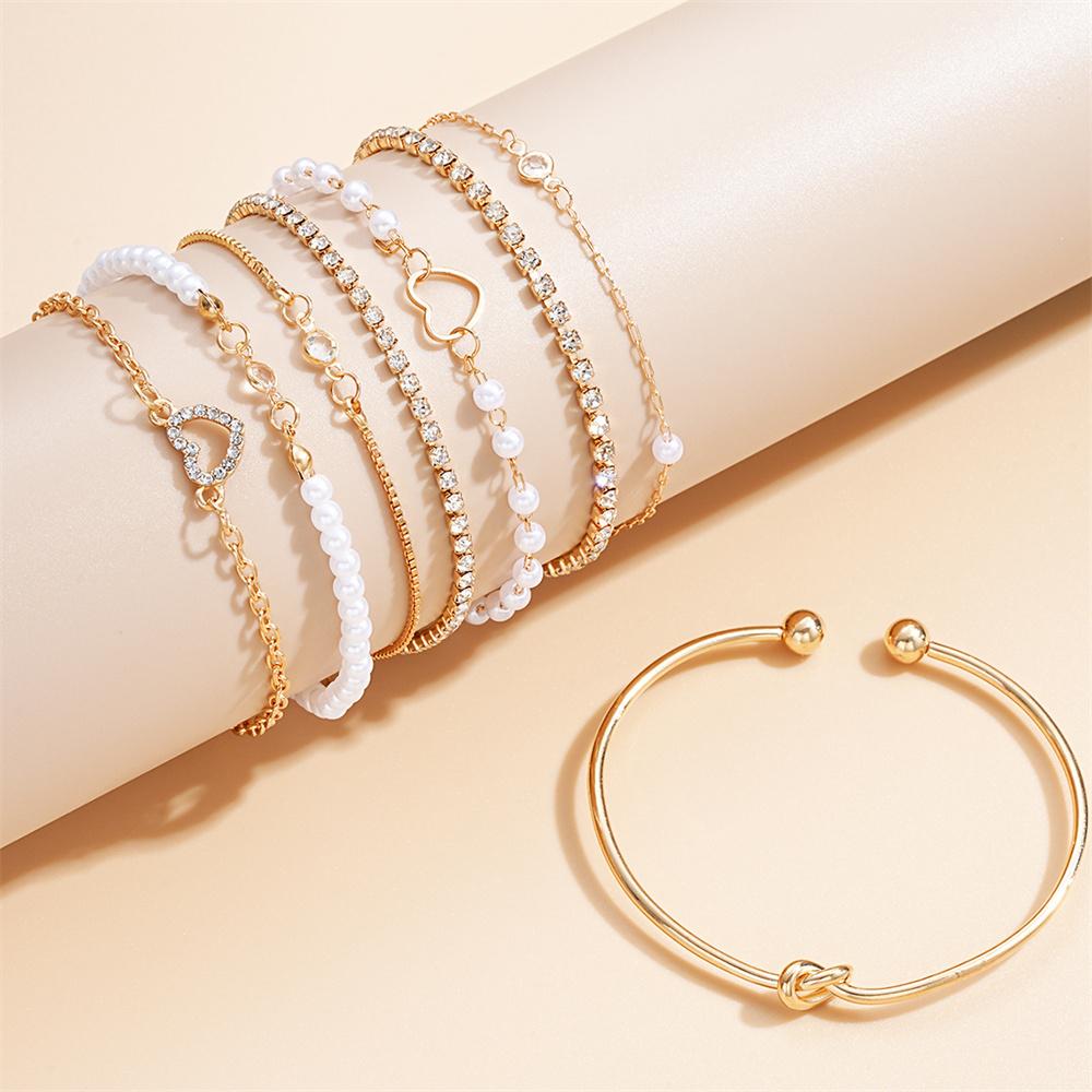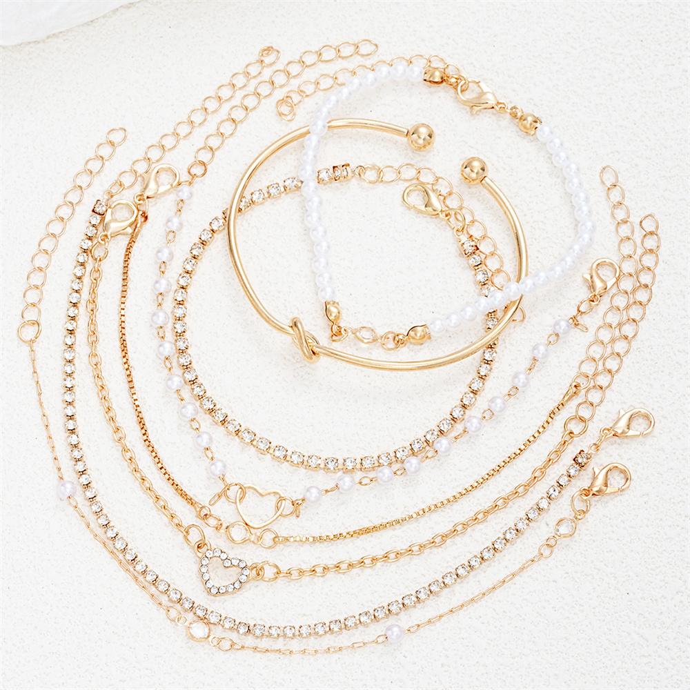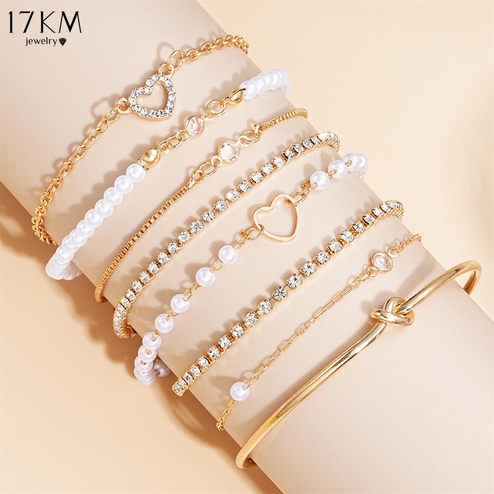 17KM Набор из 8 предметов, браслет из циркония золотого цвета, многослойные переплетенные сердца, босиком, браслет на лодыжку, на ногу, ювелирные изделия, аксессуары