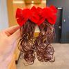 2 шт., детский парик в китайском стиле, заколка для волос, детский головной убор, красный бант, заколка для волос, новогодняя праздничная