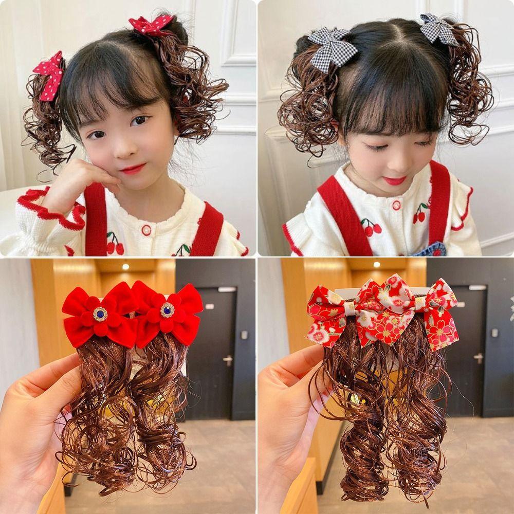 2 шт., детский парик в китайском стиле, заколка для волос, детский головной убор, красный бант, заколка для волос, новогодняя праздничная — купить товар онлайн с бесплатной доставкой до всему миру!
