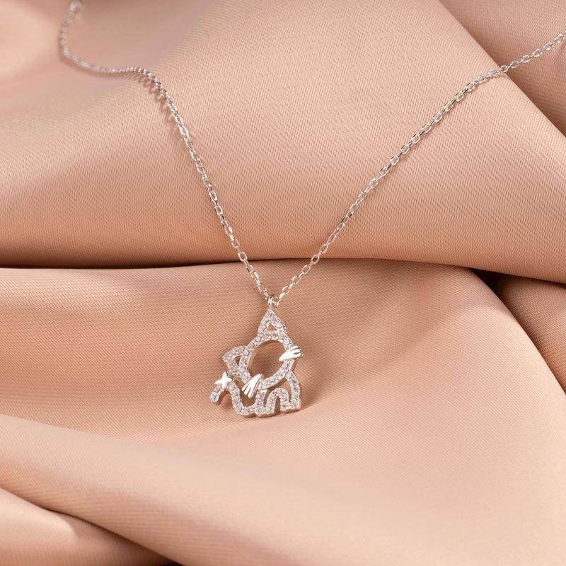 Милое полое ожерелье в виде котенка с инкрустацией из циркония и бриллиантов, цепочка для ключицы, мультяшный милый женский стиль