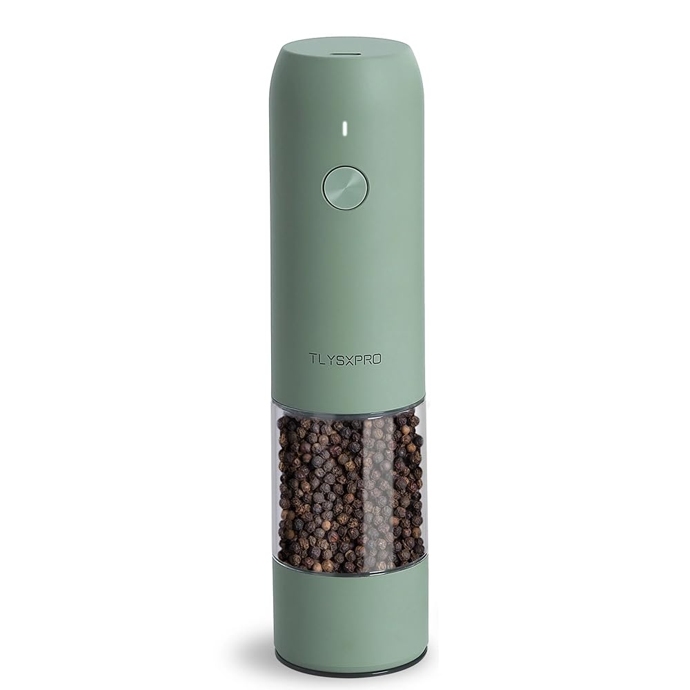 Перезаряжаемая электрическая мельница для перца со светодиодной подсветкой, регулируемая USB-перезаправляемая мельница для перца и соли, подсветка, степень помола, зарядка, мельница, (1 шт., Шалфей)