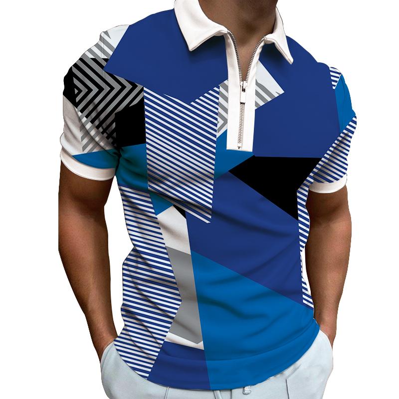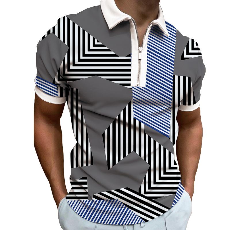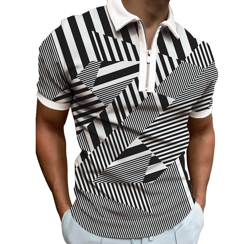 Мужская рубашка-поло с короткими рукавами и принтом в несколько полосок, эластичная, с застежкой-молнией, футболка-топ