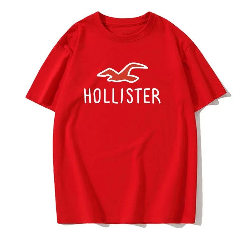 Новая футболка Hollister Эстетическая одежда Летние топы Fruit of the Loom Мужская футболка Футболка европейского размера Мужская футболка унисекс