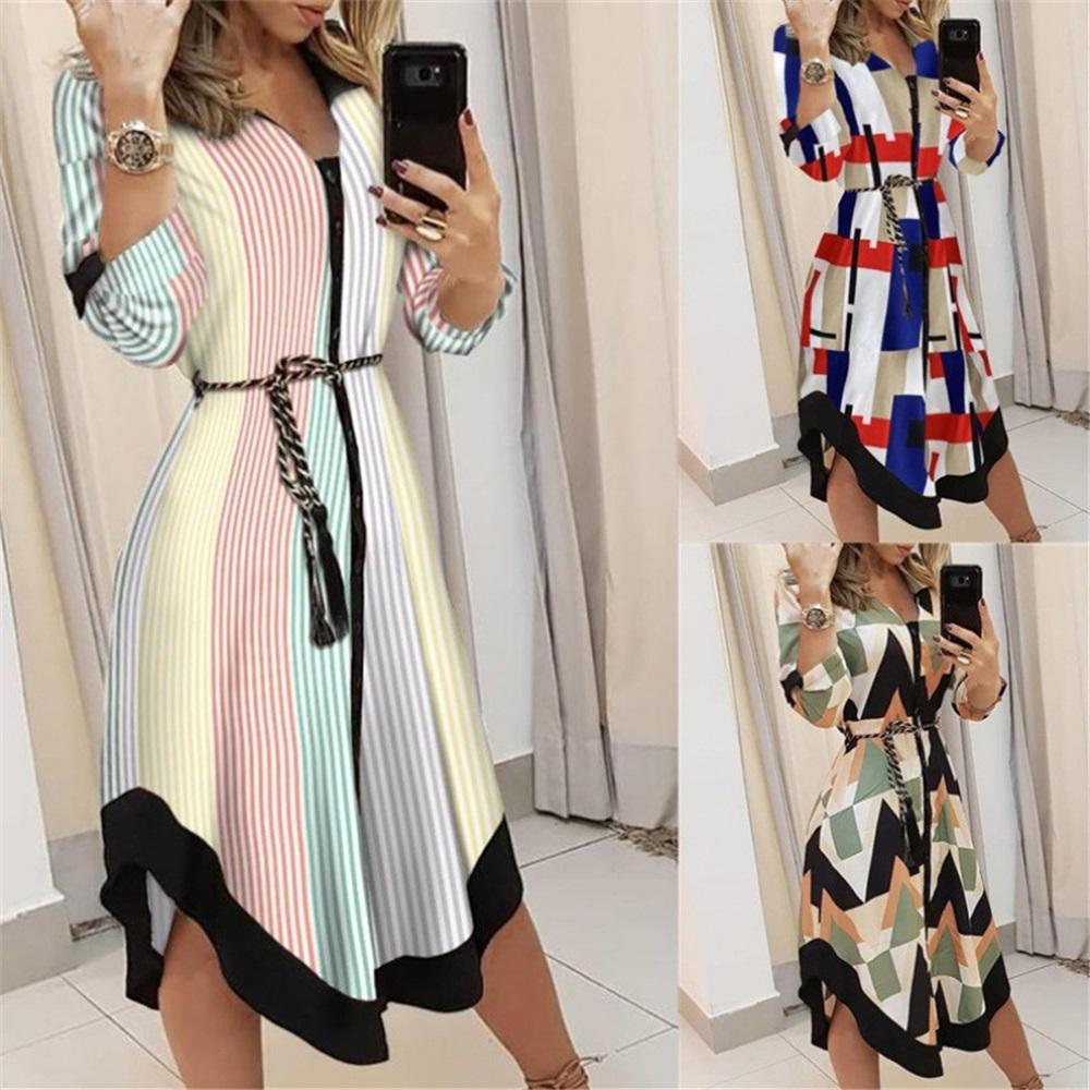 Европа и США Женщины Темперамент Печать Рубашка на бретелях Длинный Секция