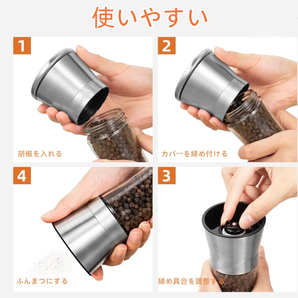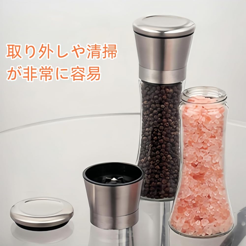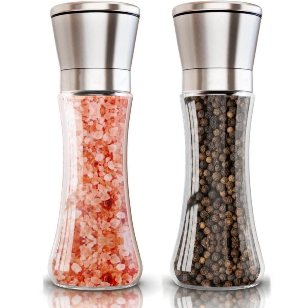 Pepper Manual Rock Set of Stainless Adjustable Ceramic Spice Crystalline Pepper Convenient For Condiment Kitchen Supplies Mill, Salt, 2, Steel,