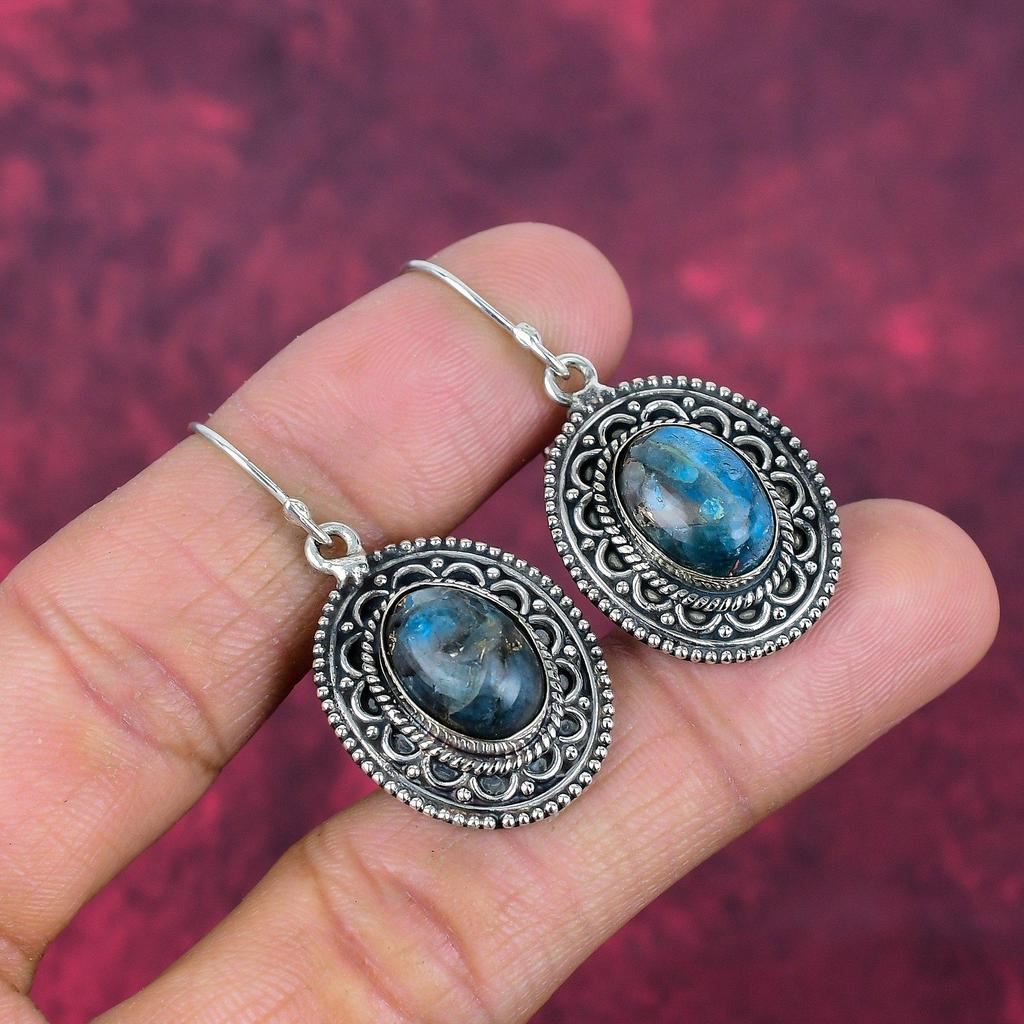 Серьги с неоновым апатитом, драгоценные камни, серьги ручной работы из цельного серебра 925 пробы, ювелирные изделия последнего дизайна
