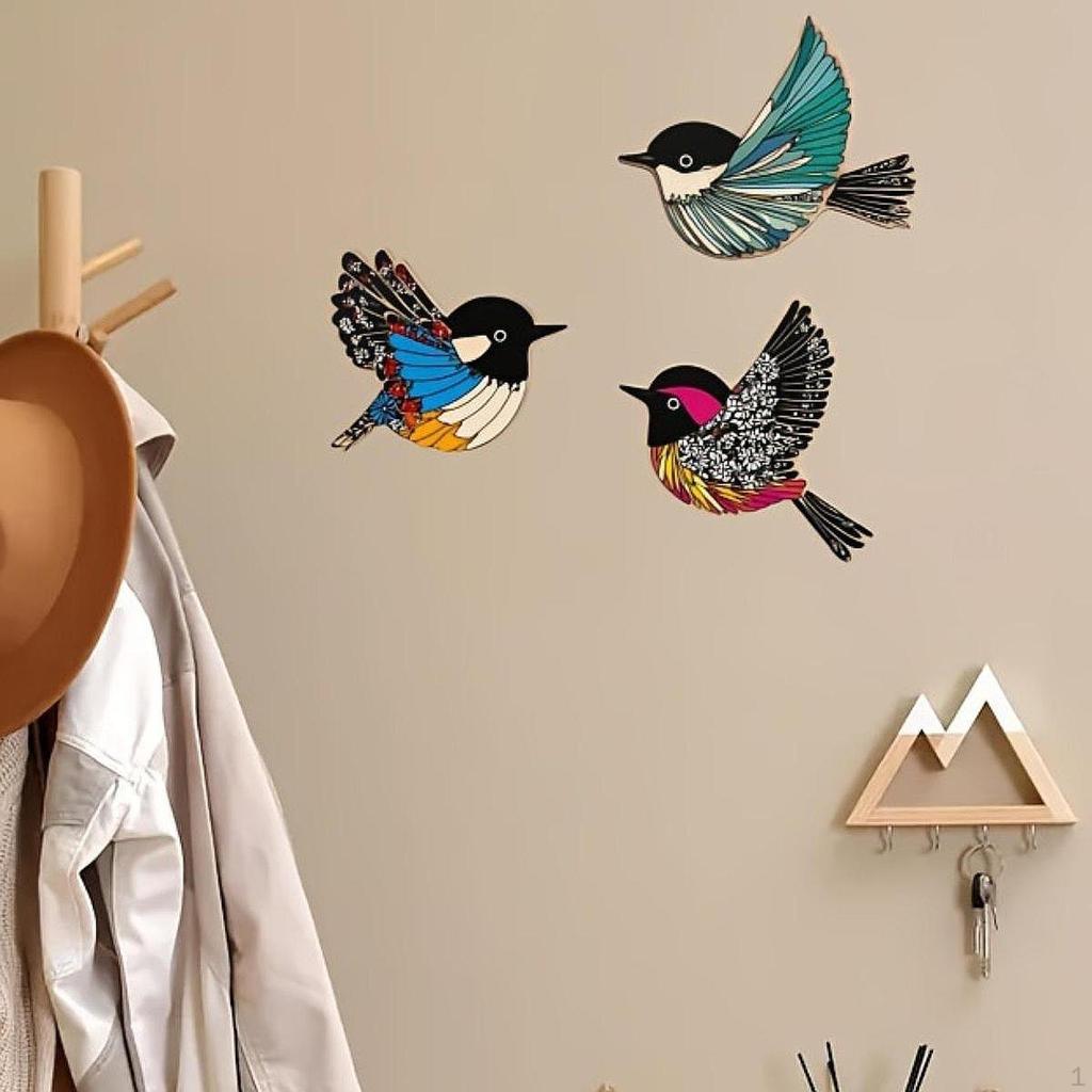 3x Деревянные птицы настенное искусство деревянные летающие птицы декор фон спальня подвесные знаки для