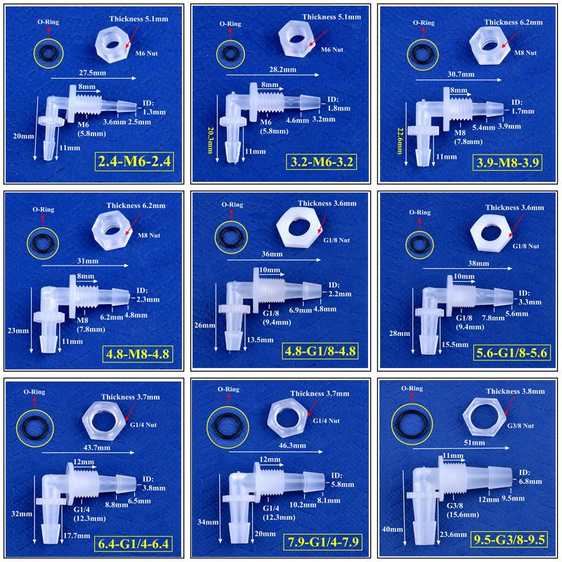 5~200pcs M6~G1/2 To 2.4-11.1mm PP Pagoda Elbow Connector+Nut O-Ring Irrigation Aquarium Tank Adapter Irrigation Water Hose Joint