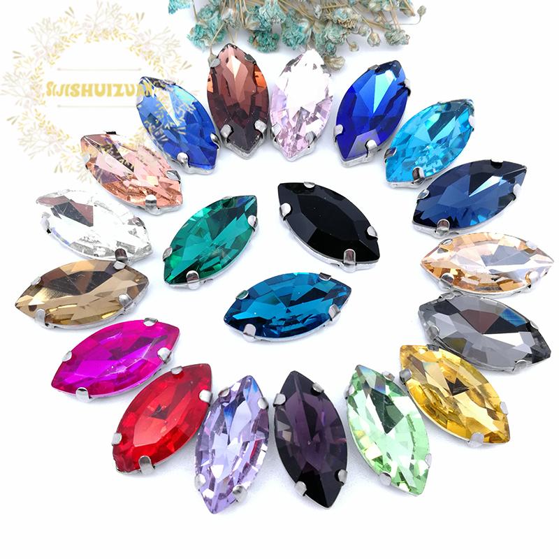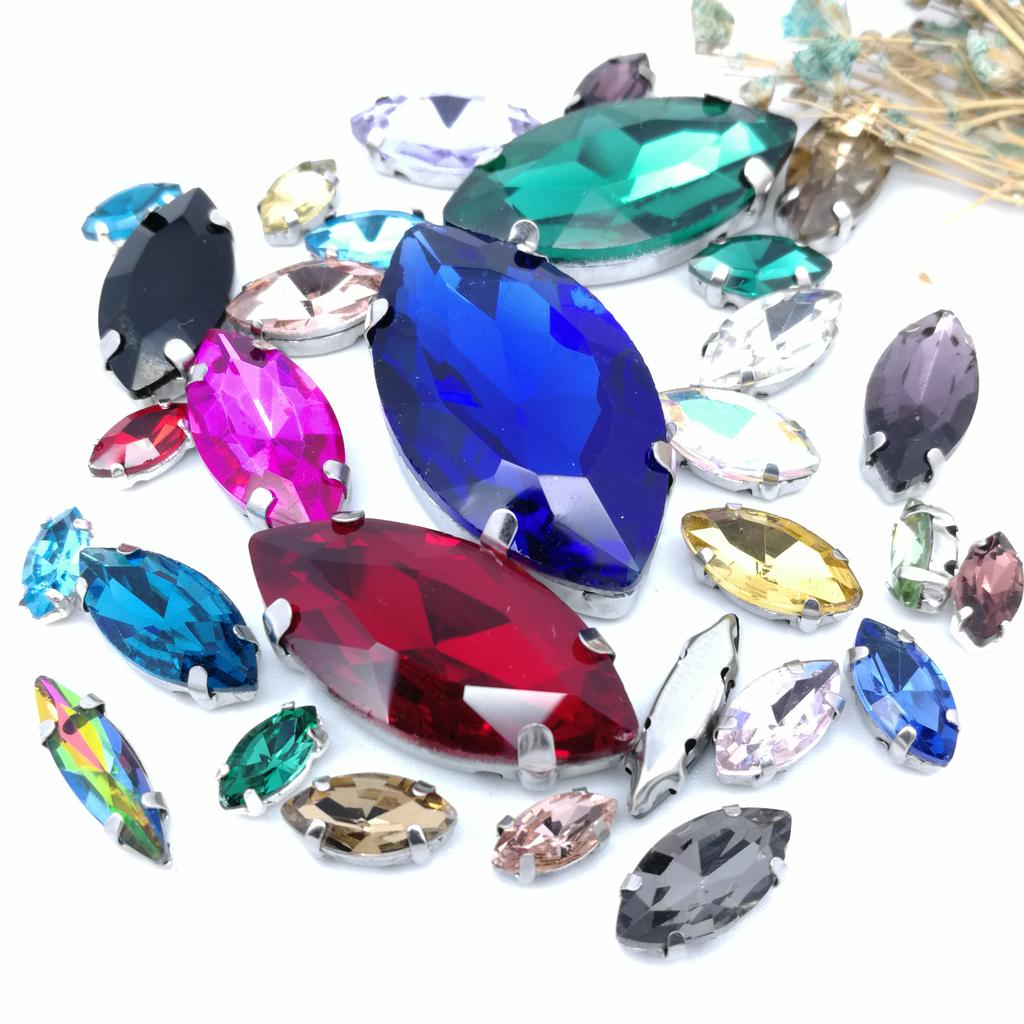 4-32 мм конский глаз / форма листа стеклянные стразы с коготь пришиты кристалл камень стразы алмаз металлическая основа пряжка для одежды