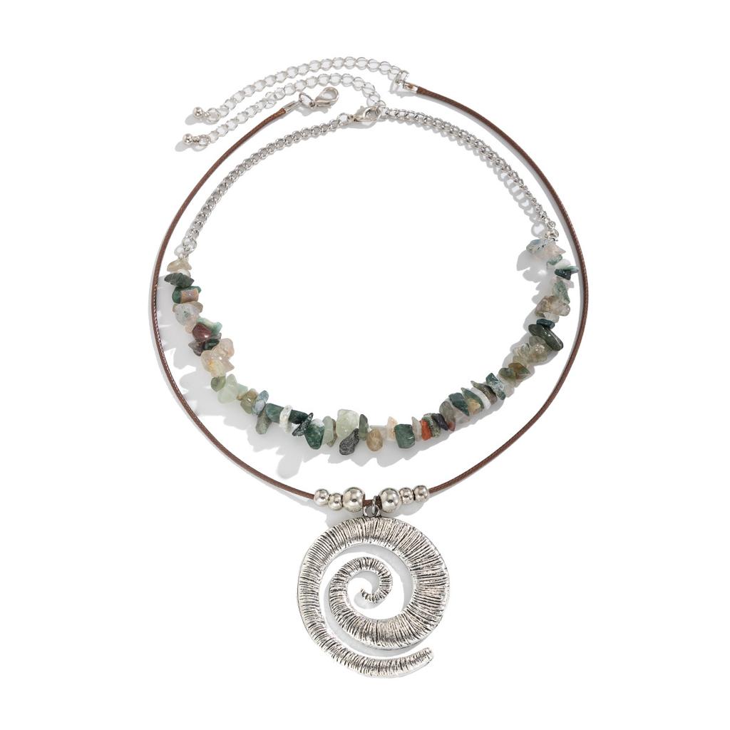 Ожерелье из сплава в стиле бохо в полоску, спиральное, винтажное, кожаное, вощеная веревка, цепочка с подвеской, литературная мода, персонализированное, многослойное женское ожерелье