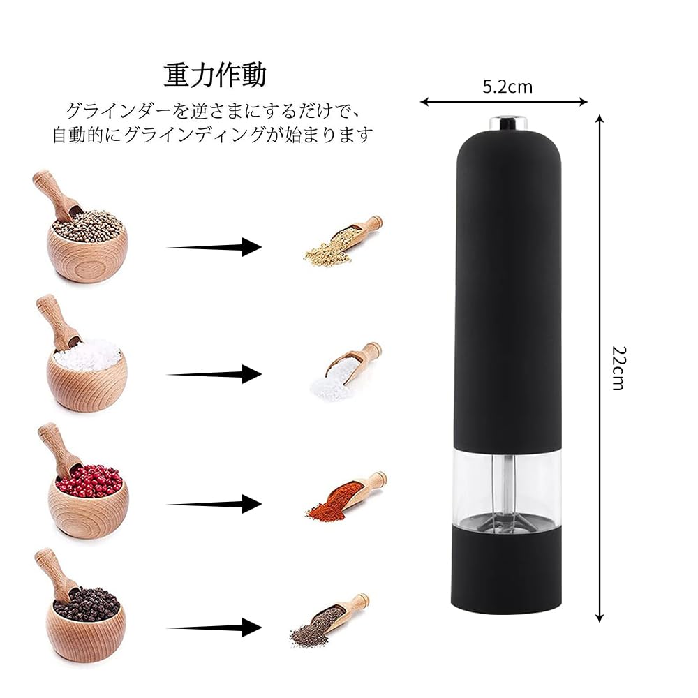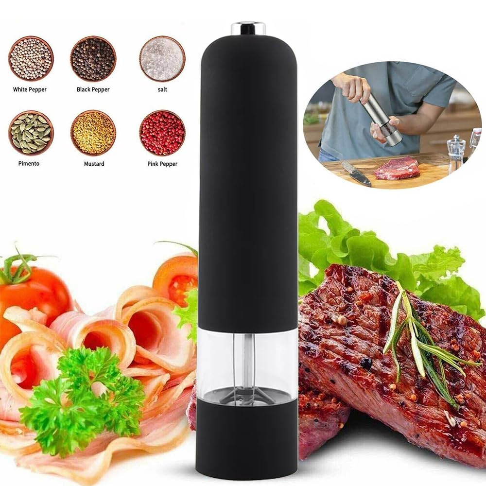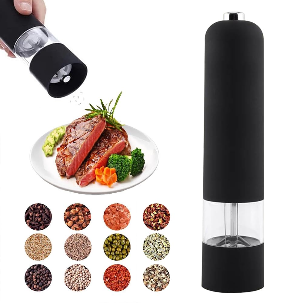 Мельница для перца электрическая кухонная автоматическая мельница для измельчения соли, перца, специй, кунжута, приправы, черного перца, управление одной рукой (АБС-пластик черный)