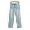 Модные повседневные женские свободные джинсы полной длины со средней талией, потертые мешковатые джинсы с широкими штанинами и рваными манжетами сзади