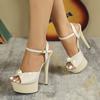 Liyke Fashion Design Pearl Peep Toe Stripper High Heels Туфли на высоком каблуке для свадебного банкета из лакированной кожи с ремешком на щиколотке для женщин