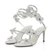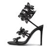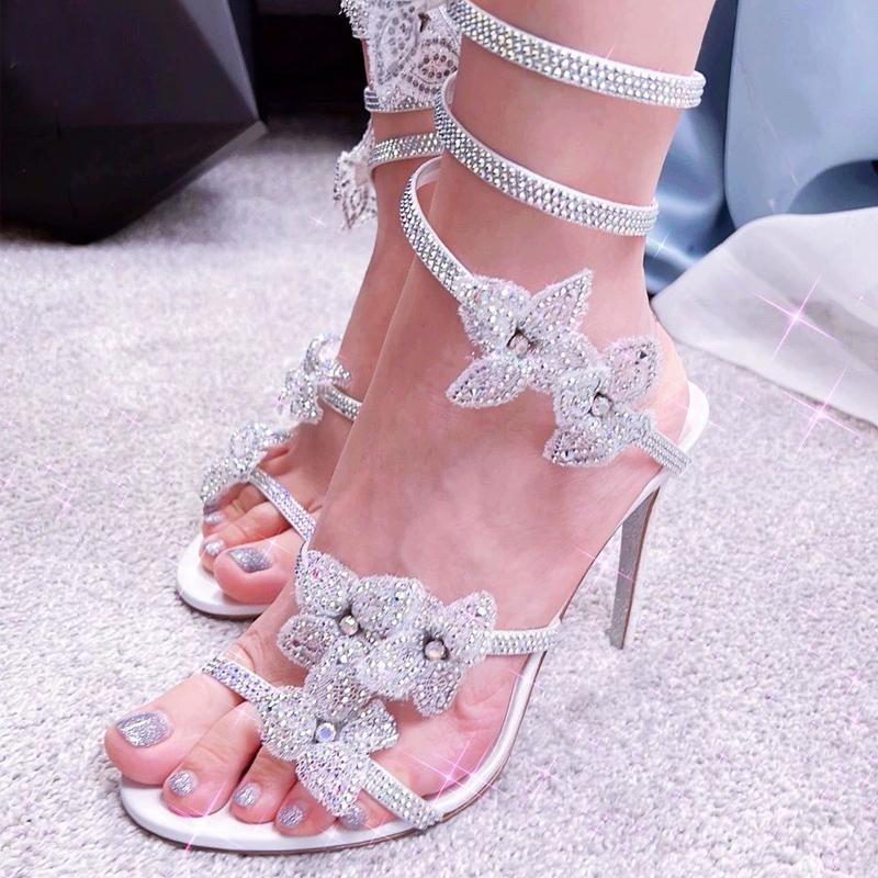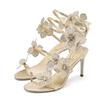 Liyke Модный дизайн Кристалл Цветы Ремешок на щиколотке Золотые босоножки Женские сексуальные Открытые Носки Стразы Высокие Каблуки Свадебные Банкетные Туфли