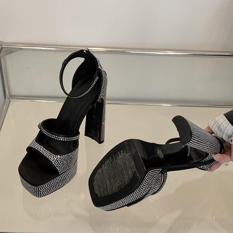 Liyke Новые брендовые босоножки на высоком квадратном каблуке со стразами и массивной платформой, женские модные туфли с открытым носком для банкета и выпускного вечера, размер 42