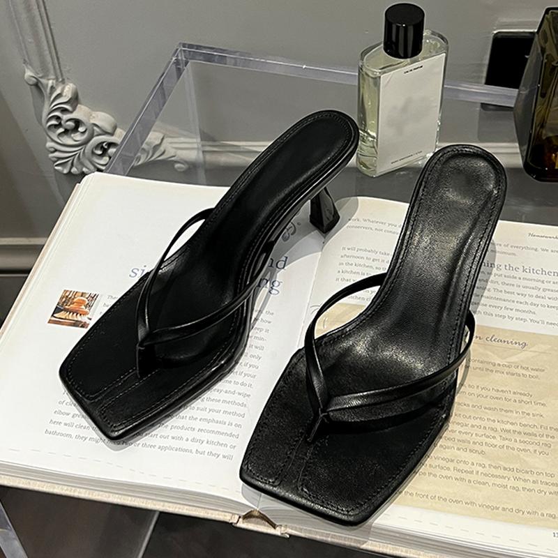 Liyke Низкие тонкие каблуки Шлепанцы женские тапочки летние уличные модные узкие сланцы с квадратным носком пляжные сандалии