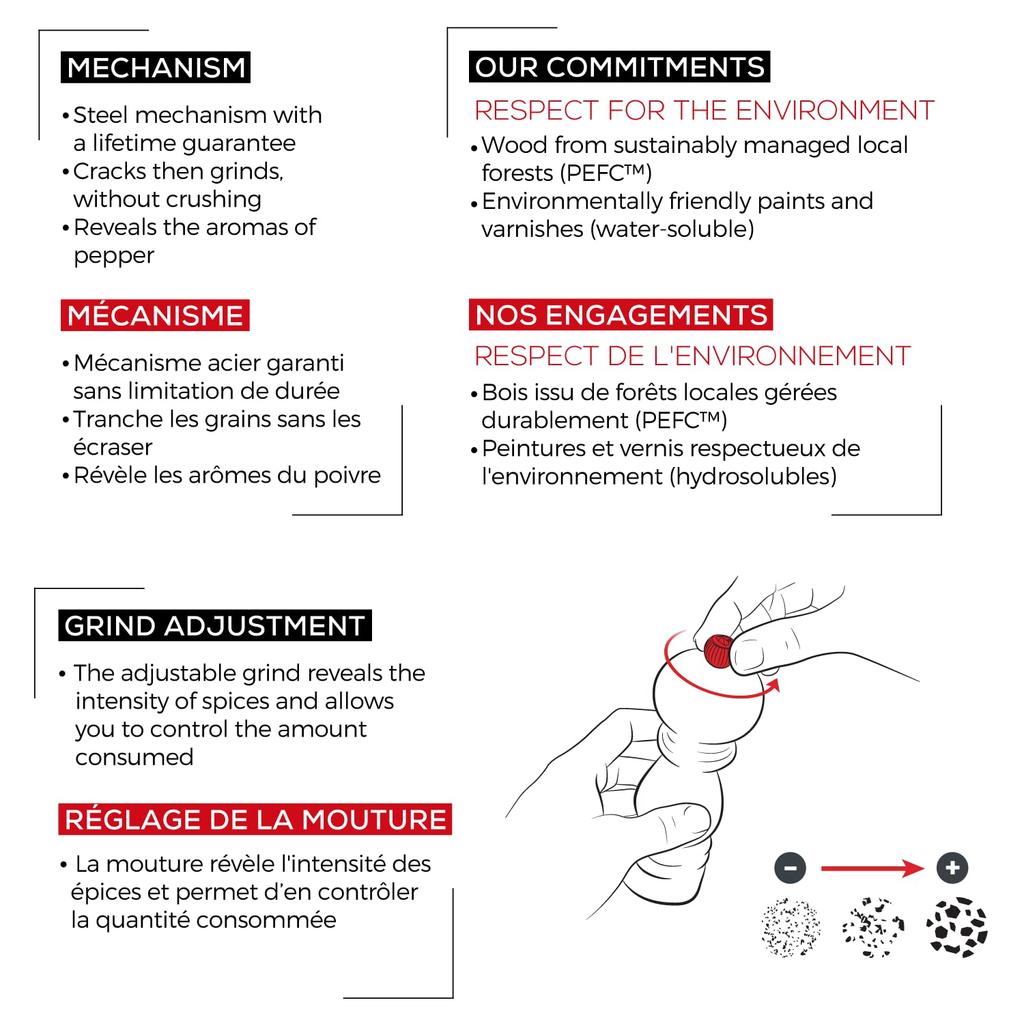 Контейнер для приправы PEUGEOT Paris Mill Мельница для перца 18 см, простое дерево 0870418