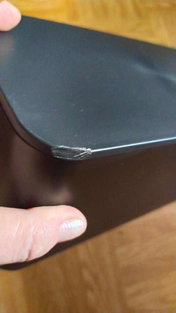Продавец схитрил и отправил товар со сколом. А чтобы скрыть изъян, зачистил уголок коробки наждачкой