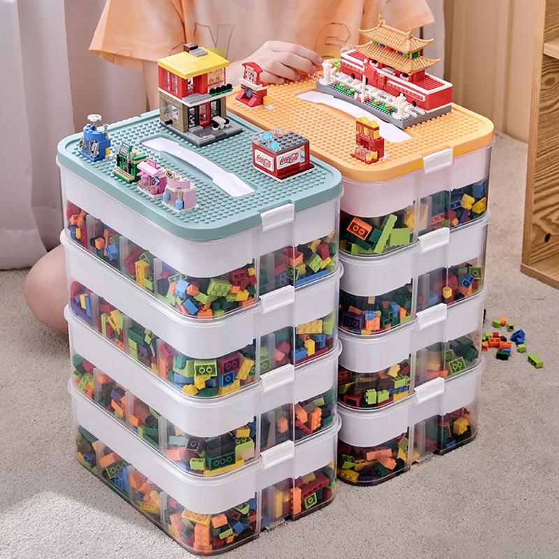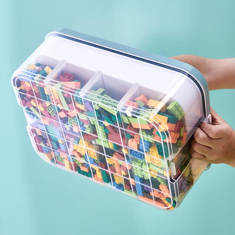 Ящик для хранения строительных блоков для 2 слоев, классифицированный прозрачный детский органайзер для игрушек с крышкой, штабелируемый, аптечка первой помощи, медицина