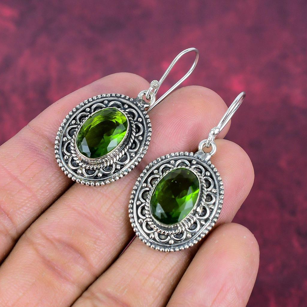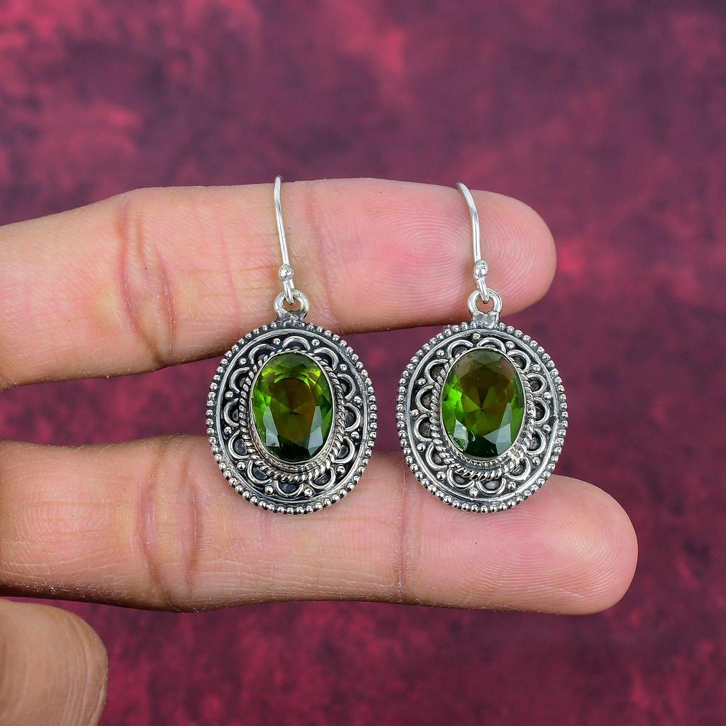 Серьги с драгоценными камнями из перидота, серьги из чистого серебра 925 пробы, серьги ручной работы с камнями по месяцу рождения, подарок для него