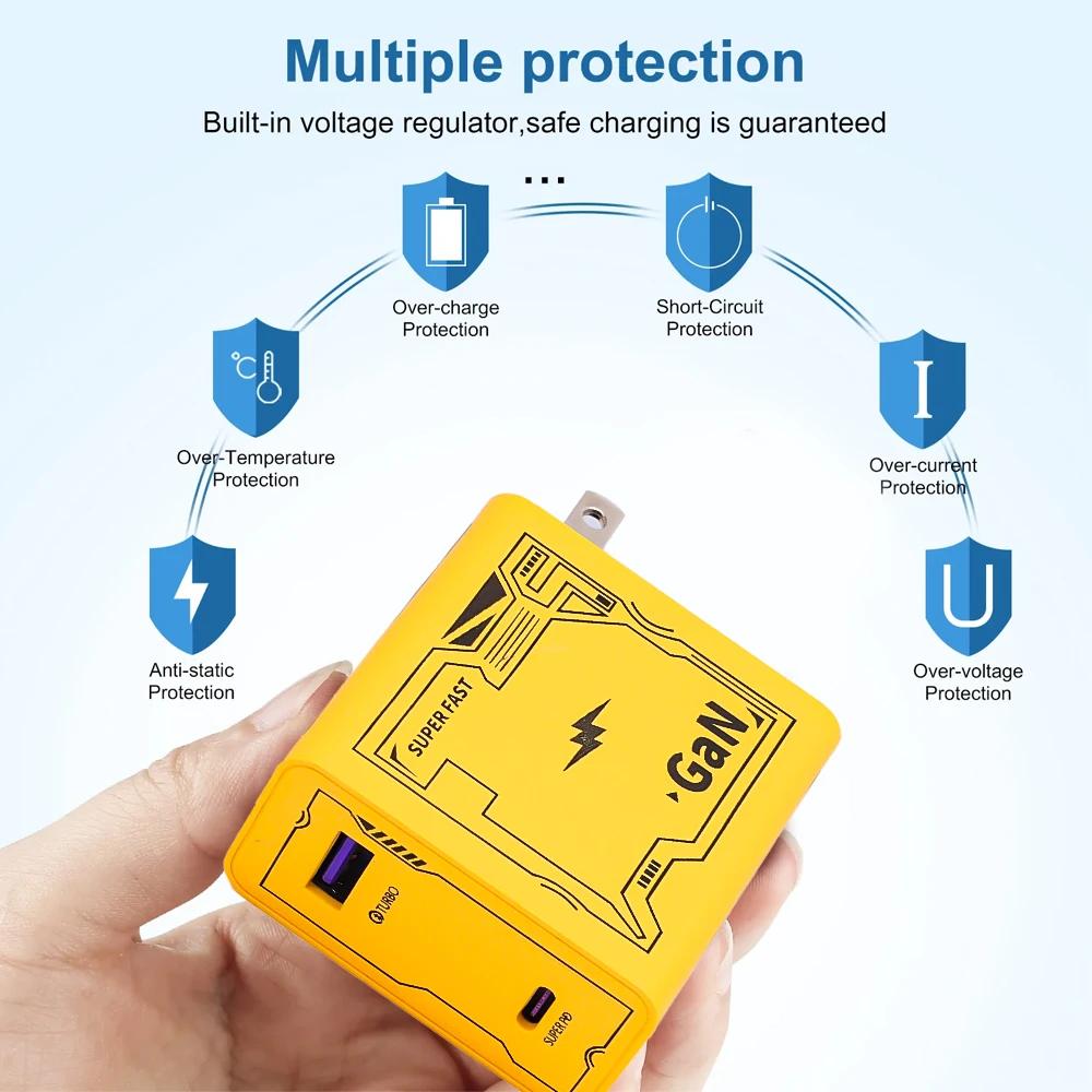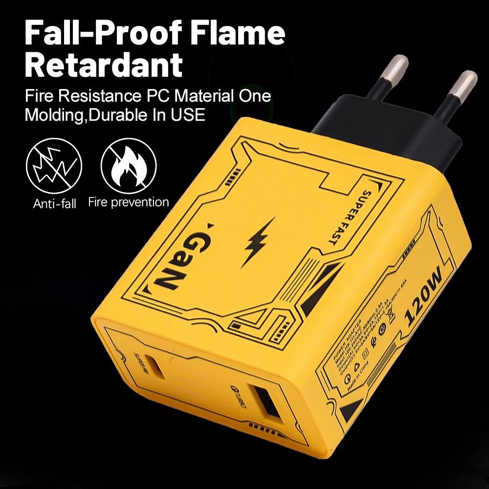 *Мощная быстрая зарядка 120 Вт, более высокая мощность, меньший размер и меньший нагрев. Решить проблему одновременной зарядки мобильных телефонов и ноутбуков. Компактная, тонкая и легкая конструкция с превосходной эффективностью и меньшим тепловыделением.. Его можно легко положить в сумку и носить с собой.