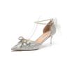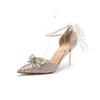 Летние женские босоножки с роскошным острым носком, украшенные стразами, бантом и цветком, на шпильках, банкетные свадебные туфли на высоком каблуке