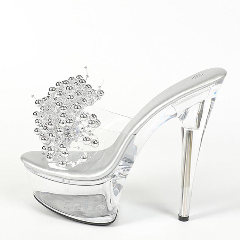 Liyke Летние прозрачные тапочки для женщин Серебряные жемчужные дизайнерские туфли-лодочки Сексуальные открытые носки Прозрачные босоножки на платформе с высоким каблуком