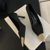 Liyke Новые весенние туфли-лодочки для женщин, офисная обувь, модные сексуальные туфли с металлическим острым носком, туфли на высоком каблуке с открытой пяткой, туфли на шпильке, женские туфли