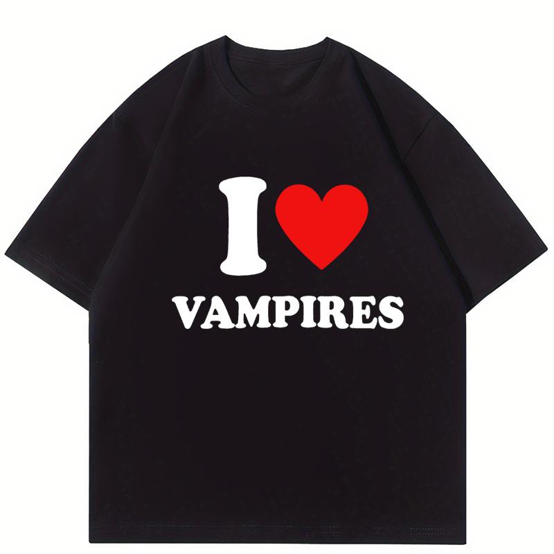 Женская футболка с забавным принтом «I Love Vampires» Летняя спортивная футболка для бега с короткими рукавами и буквенным принтом для женщин и девочек