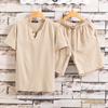 Мужской костюм с короткими рукавами, летняя футболка из хлопка и льна, однотонная, из двух предметов