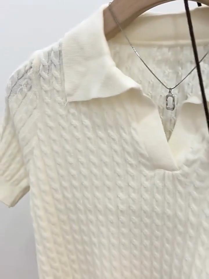 Temperament Lapel Ice Silk Knit Top Летняя свободная тонкая футболка с короткими рукавами
