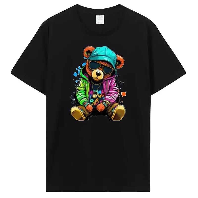 Футболка с изображением плюшевого мишки, играющего в бадминтон, хлопковая одежда, топы, графика, кавайная, для мужчин и женщин, с коротким рукавом, с принтом, модная уличная одежда