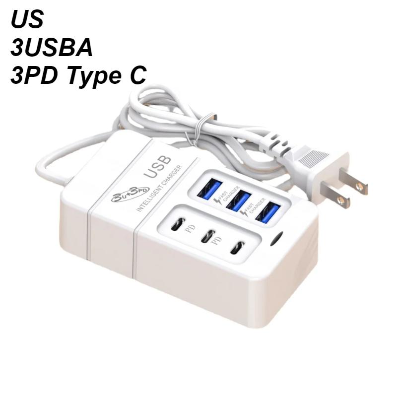 Зарядное устройство 35 Вт 6 USB выходов PD Type C Super Charge Быстрые настенные зарядные устройства USB Адаптер Мобильный телефон EU US Вилка USB Type C Зарядное устройство