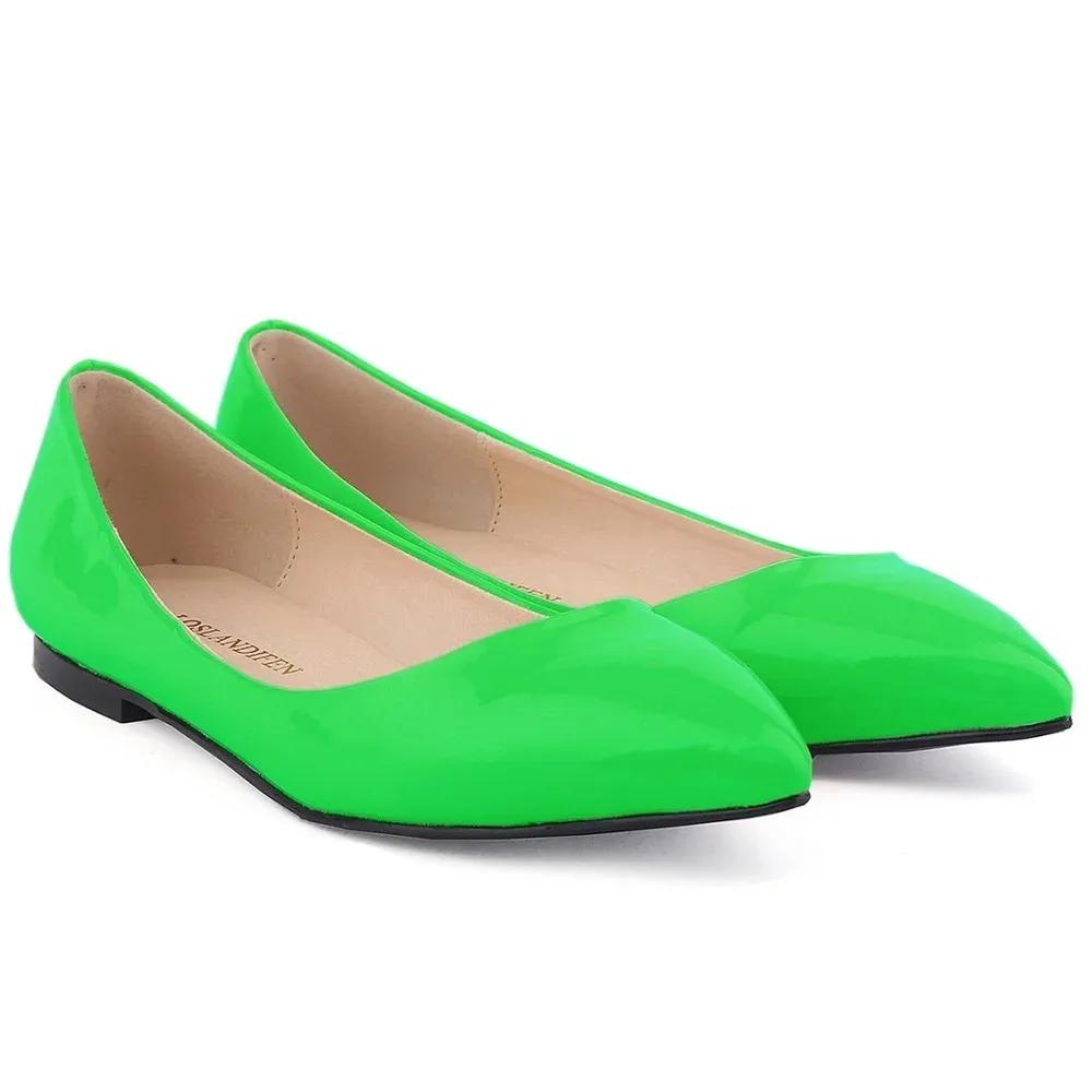 Женские туфли-балетки Весна Осень Однотонные Заостренный носок Слипоны Патентная кожа Женские балетки Новые Одинарные Повседневные Лоферы Большого размера