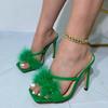 Liyke Летняя Мода Зеленые Пушистые Меховые Женские Шлепанцы Мюли Высокие Каблуки Слайды Женские Гладиаторские Сандалии Праздничные Банкетные Туфли Лодочки