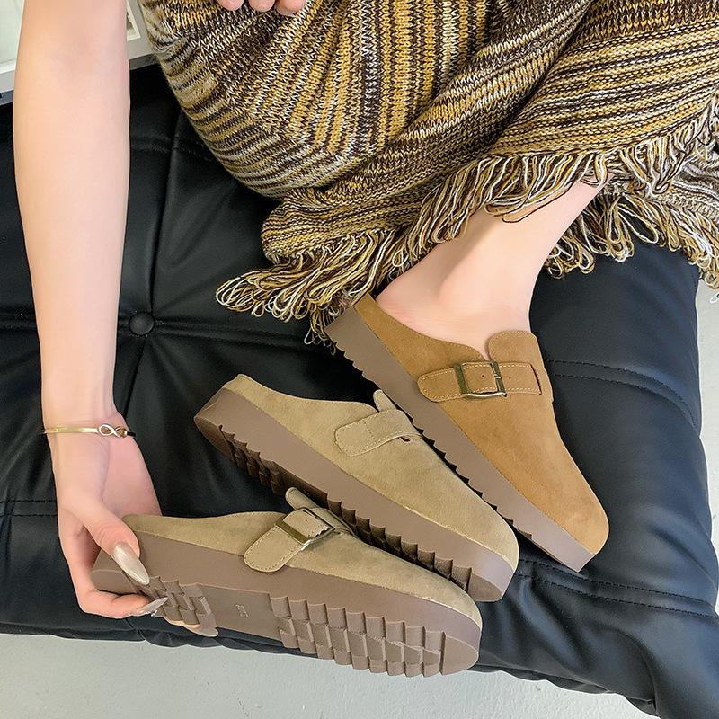 Толстая подошва полутапочки мешок голова женские 2025 новые летние повседневные универсальные ленивые люди носят нескользящие туфли Boken с одной педалью