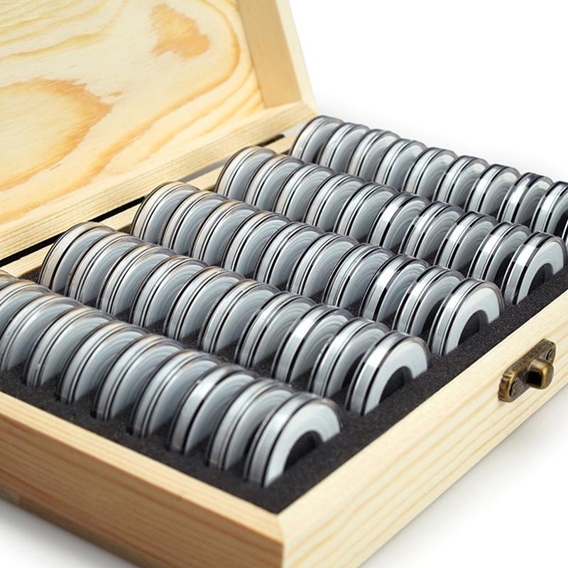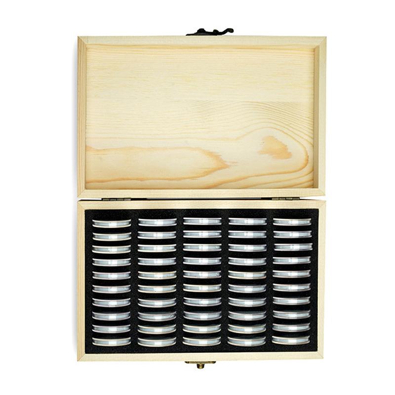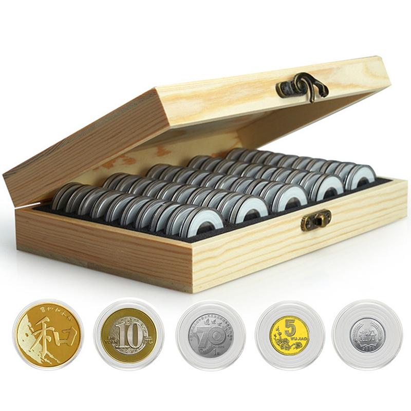 50 шт. Ящик для хранения монет с регулировочной подкладкой, регулируемый, антиоксидантный, деревянный, для коллекции памятных монет