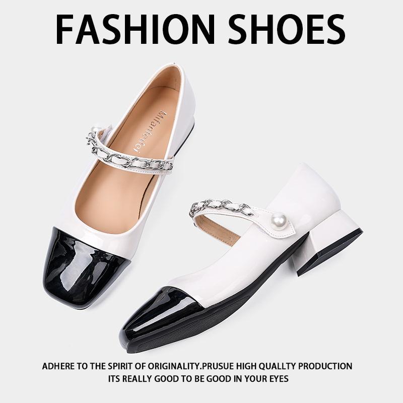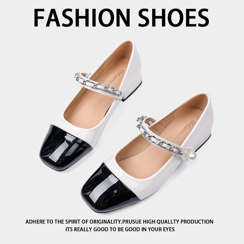 Square head small fragrant style single shoes women's thick heel 2025 spring light mouth French word with color matching Mary Jane shoes fairy style