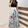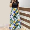 Женская мода повседневные свободные принтованные платья с круглым вырезом и коротким рукавом длинные платья с коротким рукавом длинные платья