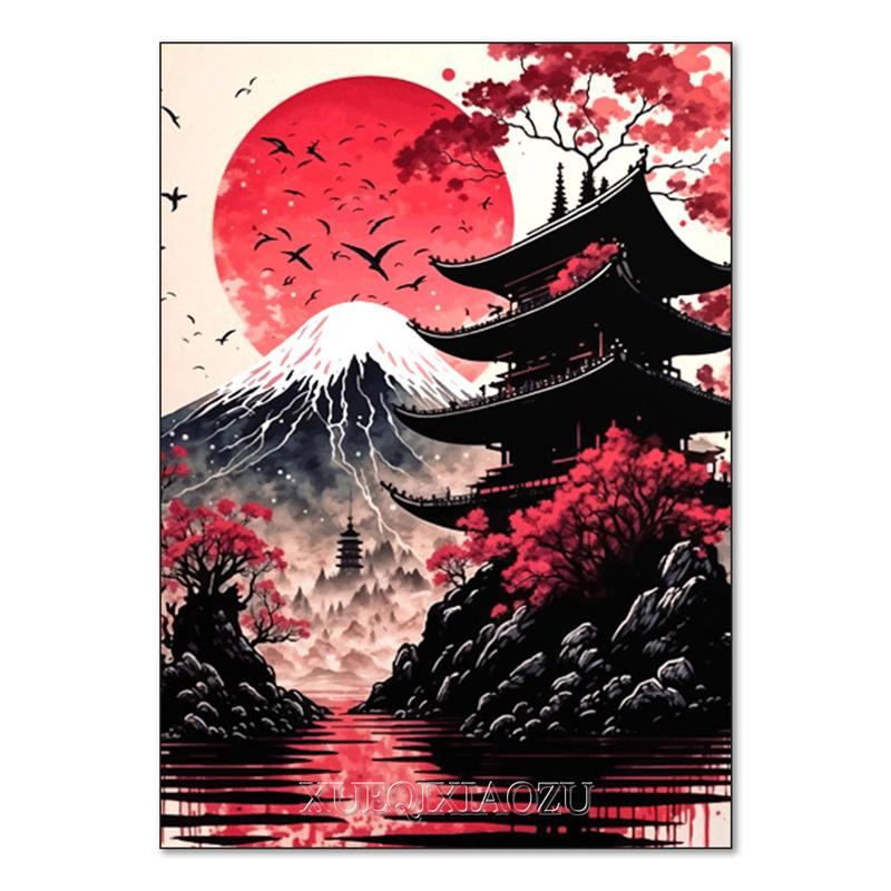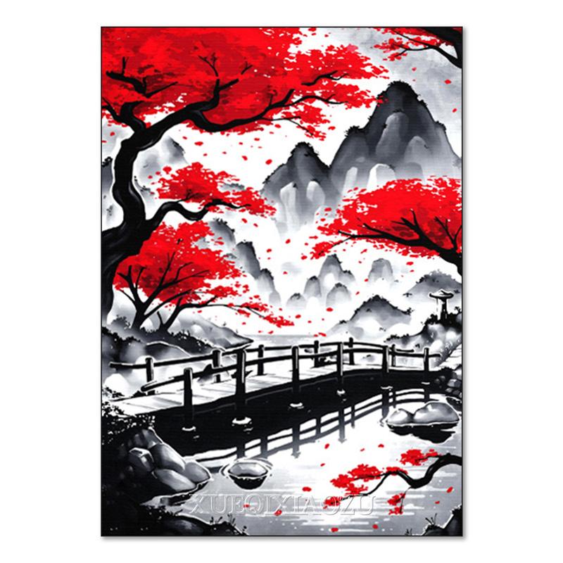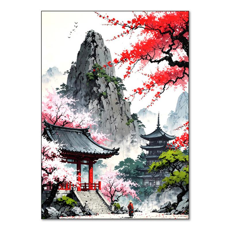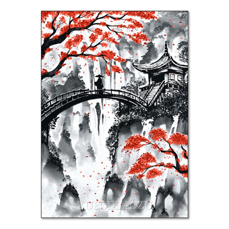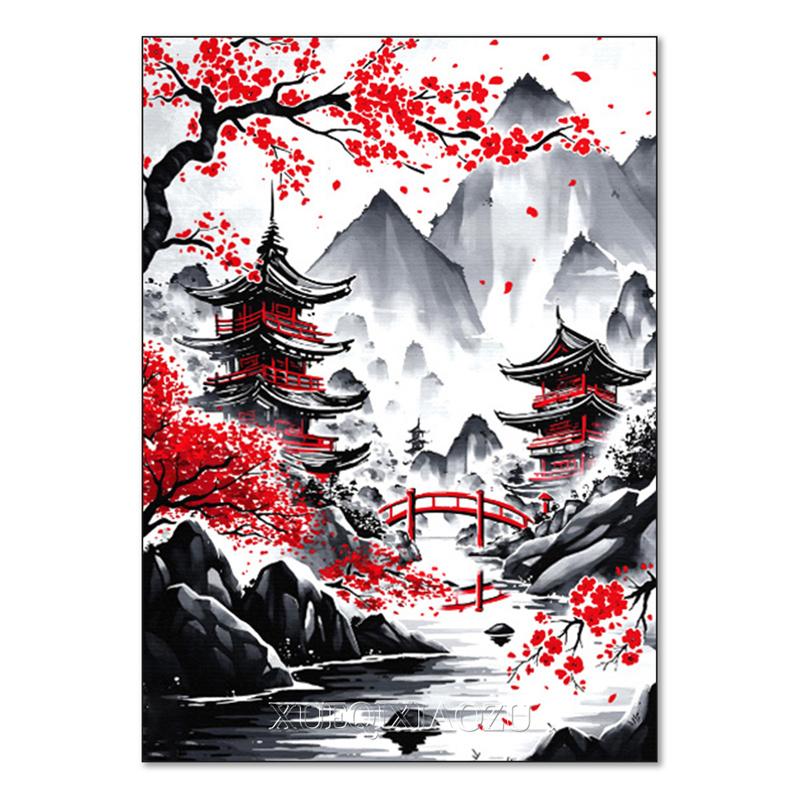 DIY Алмазная картина Японский природный пейзаж Полная алмазная мозаика Стразы Вышивка Сакура Искусство Вышивка крестом Домашний декор